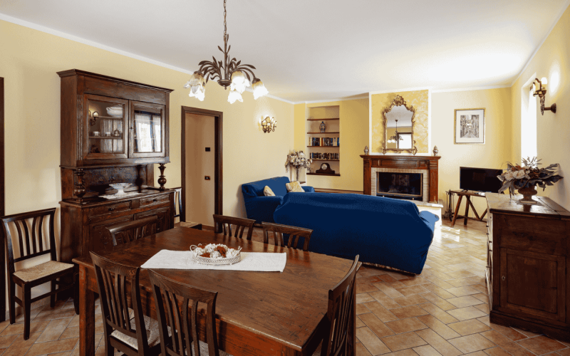 Trilocale di 80 mq, caldo e accogliente, pensato per 4 persone. Dispone di un ampio soggiorno con camino – ideale per serate rilassanti – e di una cucina completa per cucinare in comodità. La zona notte offre una camera matrimoniale e una seconda camera con due letti singoli, oltre a un bagno funzionale. Un terrazzo coperto prolunga la vivibilità della casa, perfetto per colazioni all’aperto o cene in ogni stagione. Soluzione pratica e confortevole per famiglie o amici.